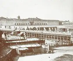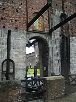 The original construction was ordered by Galeazzo II Visconti, a local nobleman, in 1358 – c. 1370;[1] this castle was known as the Castello di Porta Giova (or Porta Zubia), from the name of a gate in walls located nearby.[2] It was built in the same area of the ancient Roman fortification of Castrum Portae Jovis, which served as castra pretoria when the city was the capital of the Roman Empire. It was enlarged by Galeazzo's successors, Gian Galeazzo, Giovanni Maria and Filippo Maria Visconti, until it became a square-plan castle with 200 m-long sides, four towers at the corners and up to 7-metre-thick (23 ft) walls.[2] The castle was the main residence in the city of its Visconti lords, and was destroyed by the short-lived Golden Ambrosian Republic which ousted them in 1447.