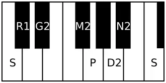| Avarohanam | Ṡ N₂ D₂ P M₂ G₂ R₁ S |