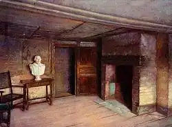 Once the family line had come to an end, the house was allowed to fall into a state of disrepair until a rekindling of interest in the 18th century.[9] Isaac Watts, Charles Dickens, Sir Walter Scott and Thomas Carlyle were among the notables that visited the birthplace and autographed the walls and windows.[10] Many of the signatures still remain on the windowpanes around the house, although the signed walls have long since been painted over.[1][7] A guest registry book includes the signatures of Lord Byron, Alfred, Lord Tennyson, John Keats, and William Thackeray.[10]