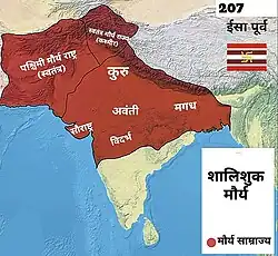 - ^ "King of Maurya VI - Shalishuka (215-202 BC)". geni_family_tree. Retrieved 25 July 2020.