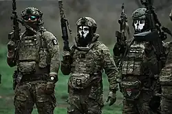 The unit is specially skilled in diving, parachuting, and mountaineering operations.[4] The primary task of the Shaman battalion is to "destroy infrastructure that is vital to the Kremlin’s military operations".[28] The battalion has conducted several secret raids into Russian territory, where special forces were dropped by helicopter at night, crossing the border at low altitude to conduct operations deep behind the enemy lines.[29][30]