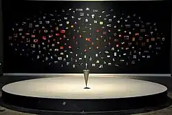 The year 2000 is a turning point as many ground-breaking elements were implemented. This was the first edition that invited foreign artists and curators, and displayed new media artworks that are more at the forefront of contemporary art with the purpose to improve Shanghai's role in arts as the “gateway to the west”.[7] This edition was held from November 6, 2000 to January 6, 2001. It was also the first that gained global attention. The international aspect of this edition can be deduced from the title: even if it has been translated into “Spirit of Shanghai”, the Chinese characters create a wordplay upon the name of the city (上"Shang" and 海"Hai" so “over the sea”) that stands for “on the high seas”. It suggested Asia as an important agent in global contemporary art movements and discourses.[8] The curatorial team was headed by Hou Hanru.[9]