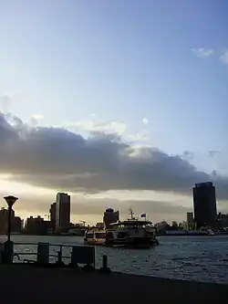 The Shanghai Ferry (Chinese: 上海市轮渡, abbr. 市轮渡) is a system of ferry routes across the Huangpu River in Shanghai. The ferry service started on January 5, 1911 by the municipal authorities in Pudong.[1] Before the 1970s, the ferry service was the only way to cross the Huangpu River. In the 1980s, the Shanghai Ferry became one of the busiest ferry services in the world. In the 1990s, as bridges and tunnels across the Huangpu river were built, the ferry service saw a sharp drop in ridership. The Shanghai Ferry currently consists of 18 ferry lines and is operated by the state-owned Shanghai Ferry Company.