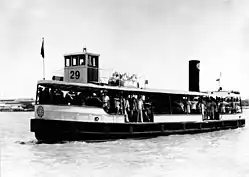In 1909, Pudong Embankment Rehabilitation Bureau, a semi-official autonomous municipal administration, dredged several tributaries of the Huangpu River. To help the workers commute across the river, the Pudong authorities rent a steamboat to ferry workers between the Tongren Pier (near the Bund at East Beijing Road) and Donggou in Pudong.[2] Since the number of workers taking the ferry was far below the ferry's capacity, the authorities would also admit other passengers along the way, charging a small fee to subsidise the operation costs. As the steamboat was much safer and faster than other means to cross the river such as sampan ferries, taking the steamboat became the preferred way for people to cross the river. Meanwhile, the authorities realised that the ferry revenues can cover the renting cost. The authorities therefore decided to make its steamboat ferry service permanent
