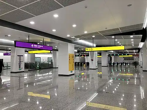 Shangwanlu station (Chinese: 上湾路站; pinyin: Shàngwānlù zhàn; lit. 'Shangwan Road station') is an interchange station between Line 9 and Line 10 of Chongqing Rail Transit[3] in Chongqing municipality, China. It is located in Yubei District and opened in 2017.[1]