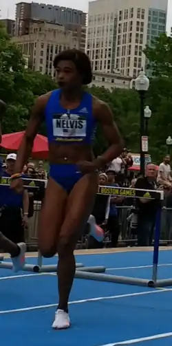 Sharika Renea Nelvis (born May 10, 1990) is an American hurdler. In 2014, she was NCAA indoor and outdoor sprint hurdles champion. After graduating from Arkansas State University that summer, Nelvis turned professional and topped the indoor world list in 2015. Nelvis represented the United States at the 2015 World Championships in Athletics in 100 m hurdles and the 2018 IAAF World Indoor Championships in 60 m hurdles. Nelvis won the women's 60 metres hurdles with a time of 7.70 at 2018 USA Indoor Track and Field Championships and repeated in 2019.
