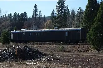 ![]() One of a few passenger cars left on the railroad sits in the old McCloud Yard. | |