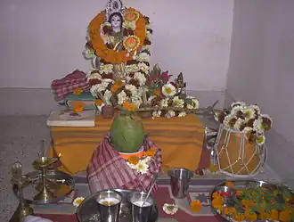 ![]() Murti of the goddess Durga, venerated on Ayudha Pooja | |