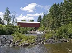 Pont de Saint-Mathieu covered bridge across the river