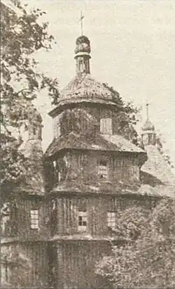 The village was mentioned in 1433 as part of the Grand Duchy of Lithuania.[4] According to Matvei Lyubavsky, Shchytkavichy was then part of the Principality of Slutsk, a magnate state of Olelkovich dukes, descendants from the Lithuanian Gediminids (male line) and Ruthenian Rurikids (female line).[5] The Slutsk dukes ruled with the help of a boyar "duma", and their fiefs were knyazs, boyars and veldamai, who received landownership for their military or administrative service.[6]