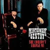 "She Couldn't Change Me" is a song written by Gary Nicholson and Chris Knight and recorded by American country music duo Montgomery Gentry. It was released in February 2001 as the first single from the duo's 2001 album Carrying On. The song peaked at number 2 on the US Billboard Hot Country Songs chart and at number 37 on the Billboard Hot 100, making it one of their highest-peaking crossover songs.