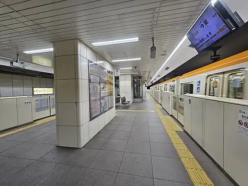 The station has one island platform serving two tracks; automatic platform gates are present on the platform.