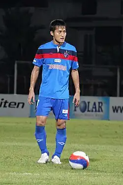![]() Sakurada preparing to take a freekick against Home United in an S.League fixture at Choa Chu Kang Stadium on March 4, 2012 | |||
