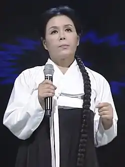 Shin Shin-ae is an accomplished singer, and her famous hit song "The World is a Wonderful World" earned her the title of a legendary star of the 90s. She is also referred to as "the Queen of Satire Songs".[6] In recognition of her dedication to trot music, she won the 2018 Proud Korean People Award held at the National Assembly Hall on October 13, 2018, for her contribution to the development of popular music.[7]