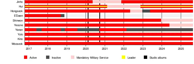 On November 6, 2023, Hongseok canceled his exclusive contract with Cube Entertainment.[168] Shinwon will enlist as part of his mandatory military service on December 21.[169]