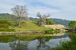 The Shionjiyama Kofun (心合寺山古墳) is a Kofun period keyhole-shaped burial mound, located in the Otake neighborhood of the city of Yao, Osaka in the Kansai region of Japan. The tumulus was designated a National Historic Site of Japan in 1966 with the area under protection expanded in 1978.[1]