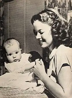 In 1943, 15-year-old Temple met 22-year-old John Agar, whom she married two years later in 1945, at age 17.[86][87][88] She gave birth to Linda Susan Agar in 1948.[86][89][90] Agar was reportedly an alcoholic and had extramarital affairs. Temple divorced Agar in 1950 on the grounds of mental cruelty.[91]