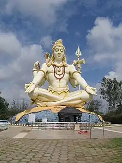 The 1,500 tonnes statue of Shiva is considered as the second largest resting statue of Shiva in India and was prepared by sculptors from Shimoga for over 13 months. The civilian design was supplied by Bangalore-situated architects. The idol of Shiva is made of cement and steel. A small Shiva Linga has been placed beneath the statue. Also, the "Shiva Charite" will be engraved on the inside walls of the Temple in the Kannada language to help devotees learn the mythological stories related to Shiva. The Trust wants to make it a major pilgrimage centre.