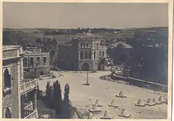 Before 1948, Shmuel HaNavi Street lay at the northern edge of Jewish Jerusalem, with the Arab neighborhood of Sheikh Jarrah to the northeast.[3][4] Its location beyond populated areas such as Mea Shearim and Beit Yisrael was the reason why Simcha Mandelbaum, a Jewish merchant who had raised his family in the Old City, decided to build a new home at the eastern end of the street in 1927.[5] While Mandelbaum wished to set an example for other Jews to build in the area and expand the borders of Jerusalem, the Waqf, which owned large tracts all around, forbade Arabs from selling any more land to Jews, so the three-story house stood on its own.[6][7] During the riots of 1929 and 1936, the Haganah took up positions in the Mandelbaum House to drive back the rioting Arabs leaving Damascus Gate toward Mea Shearim and Beit Yisrael. Arab Legionnaires blew up the house during the 1948 Arab-Israeli War.[6][7]
