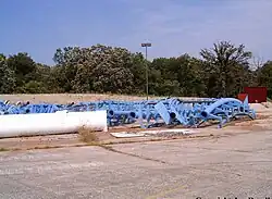 After Shockwave closed, Six Flags Great America spokesperson Susan Storey initially stated that the coaster would be relocated, mentioning that it would likely be moved to another Six Flags park,[28] though this never occurred.[8] The coaster's pieces sat in storage just outside of the park until 2004, when they were scrapped. Following this, Shockwave's red train was sent to Six Flags Magic Mountain for use on Viper, while the blue and yellow trains were sent to Six Flags Great Adventure for use on Great American Scream Machine.[5][8] Bolts from the coaster were given away in a raffle to members of American Coaster Enthusiasts.[22] Shockwave's plot of land and gift shop were reused for Superman: Ultimate Flight, which opened on May 3, 2003.[10][29]