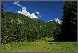Shovi (Georgian: შოვი) is a village in the Oni Municipality of Racha-Lechkhumi and Kvemo Svaneti in Georgia. It is a mountain climatic and health resort known for its carbonated water, situated on the confluence of the Buba and Chanchakhi Rivers, left tributaries of the Rioni River. The village faces the main ridge of the Greater Caucasus to the north, and the Shoda-Kedela Range to the south.