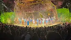 Shucked is a 2022 musical with music and lyrics by Brandy Clark and Shane McAnally, and a book by Robert Horn. The Broadway production began previews at the Nederlander Theatre on March 8, 2023, before opening on April 4.[1] The show played its final performance on January 14, 2024. It received positive reviews and went on to receive nine nominations at the 76th Tony Awards, including Best Musical. Cast member Alex Newell became one of the first two openly non-binary performers to be nominated for and win a Tony Award, with their win for Best Featured Actor in a Musical.[2][3]