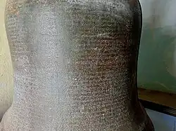 The Shwezigon Pagoda Bell Inscription (Burmese: ရွှေစည်းခုံဘုရား ခေါင်းလောင်းစာ) is a multi-language inscription found on the Shwezigon Pagoda Bell, donated by King Bayinnaung of Toungoo Dynasty and located at the Shwezigon Pagoda in Bagan, Burma (Myanmar). Written in Burmese, Mon, and Pali, the inscription lists the important events in the first six years of his reign. It is the only contemporary record in Burmese that calls the king "Conqueror of the Ten Directions", the title by which he is widely known in Mon and Thai.[1]