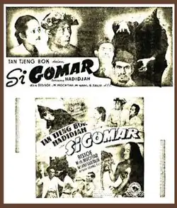 Si Gomar is a 1941 film from the Dutch East Indies which was written and directed by Tan Tjoei Hock and produced by The Teng Chun. Starring Hadidjah, Mohamad Mochtar, and Tan Tjeng Bok, the movie follows a brother and sister who are separated by robbers and almost marry before their cousin recognises them.