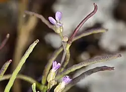 Sibara is a genus of ten plant species in the family Brassicaceae known commonly as the winged rockcresses. They are native to North America. Sibara are similar to cardamines, sending up thin herbaceous stems that bear tiny white to purple flowers. Seeds are borne in flat, laterally compressed, fleshy fruits up to an inch long. Selected species: