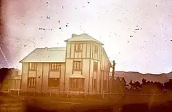 In 1867, a massive snowstorm ruined the farming stations that the Rosses owned and leased. George Ross was declared bankrupt and had a mental and physical breakdown; at the time, the couple had seven children aged under 10 years old. The family moved to live with Ross' parents at their property in Upper Riccarton, Christchurch. Her father purchased land on the corner of Montreal and Peterborough Streets and built a small building which Ross used to establish a boys' school.[2] In February 1869, she opened Ross House, a boys' preparatory school (most boys went on to Christ's College), enrolling both day pupils and boarders, and also took in boarders attending other schools.[4] The school was successful and in 1871 Ross' father purchased a larger plot of land and re-located the school and dormitories to the corner of Montreal and Gloucester Streets. One of her pupils was the mountaineer Guy Mannering.[1][2]