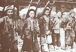 The first Chinese settlers arrived in Sibu during the 1860s,[24] with a group of Hokkien people constructing two rows of 40 shophouses around Sibu Fort.[25] These early Chinese settlers were a minority, primarily consisting of Kekhs and Min Nan individuals engaged in commerce. A small number of Chiang Chuan and Amoy people also settled in Sibu for commercial purposes.[20]
