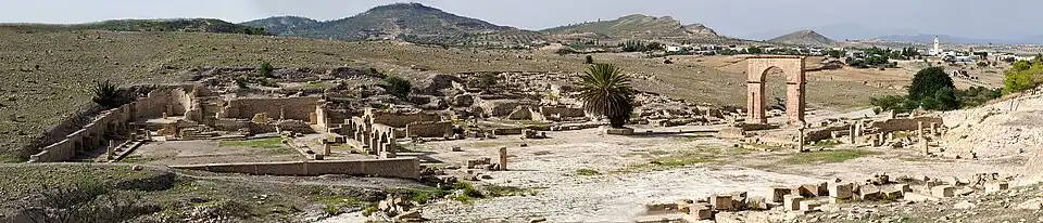 It is about a kilometer from an ancient Roman African site, Feradi Maius,[2][3] whose vestiges discovered in 2003 date from the 2nd century and the 3rd century. In particular, there is the triumphal arch that gives access to the forum lined with commercial premises, a nymphaeum where the water of a spring, a Capitoline temple, thermal baths etc.