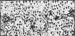 The Siamese then endeavored to confine the French troops in the Bangkok fortress, by building redoubts. Twelve small forts were constructed around the French fortress, each one containing between seven and ten cannons. According to the French, this was done with the help of the Dutch.[28] The Chao Praya, connecting the fortress of Bangkok to the sea, was lined with numerous forts, and was blocked at its mouth with five to six rows of huge tree trunks, an iron chain and numerous embarkations.[29] Altogether, there were seven batteries, containing 180 cannons.[30]
