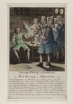 Most of the Carlisle garrison were initially held in a dungeon in the castle without food or water for several days; in January, nearly 200 were transferred to York Castle, where they joined 80 prisoners taken at Clifton Moor.[12] 27 members of the Manchester Regiment were executed, including nine officers who were hanged, drawn and quartered in London on 30 July 1746; they included Towneley, whose argument he was a French officer was rejected by the court.[13] Hamilton, along with a number of others including James Bradshaw and Sir John Wedderburn, was executed on 28 November.[14]