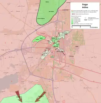 - ^ "Syrian forces try seize rebel-held areas of Homs, weakened by defections and cut supply lines". U.S. News & World Report. Retrieved 25 October 2014.