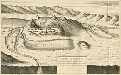 Karlović was at the time of the siege located in Topusko, north of Bihać.[25] When he heard the news of the Ottoman attack, he started gathering an army to relieve Knin. Karlović also asked the captains from Austria for assistance. While the ban was preparing an army, the Ottomans launched three assaults against the city. Vojković surrendered the fortress on 28 May, after negotiations with Husrev Bey. Under the agreement, he was granted permission to leave Knin with his men. Ottoman troops entered Knin on the following day.[33][34] It is not known whether the free departure of the civilian population was part of the agreement. They were probably able to leave freely as well.[35] The Ottomans allowed civilians to remain in their conquered territories if they paid land tax (haraç), which was levied on non-Muslims in the empire.[36]