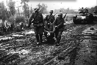 ![]() German soldiers carry a dead comrade killed during the siege of Kraljevo in October 1941 | |||||||