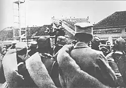 The attack on Kraljevo was one of the battles waged during the anti-Axis uprising in German-occupied Western Serbia, then part of the Axis occupied Yugoslavia. At the beginning of October 1941 military units of Yugoslav Army in the Fatherland and groups of communist rebels established Operational Headquarters (Serbian: Оперативни штаб) after they first captured German-occupied Čačak. The representatives of the Yugoslav Army in this HQ were Major Radoslav Đurić and Captain Jovan Deroko, while communist representatives were Ratko Mitrović and Momčilo Mole Radosavljević.[2] This Operational Headquarters decided to move their troops toward Kraljevo and prepare to capture it.[3]