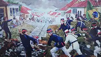 The siege gave president Floriano Peixoto enough time to gather and equip soldiers in São Paulo to fight back the federalist advance.[4] The besieged forces numbered between 700 and 900 regulars and volunteer civilians, mostly were volunteers however, fighting against the revolutionary forces which consisted of about three thousand combatants.[1] The remains of general Carneiro, as well as many others who fell during the resistance, are buried in the town's Pantheon of Heroes.