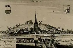 At the same time that the relief force marched to Saint-Omer, Thomas of Carignano sent Paolo Fanfanelli, Sargento Mayor of Carlo Guasco's tercio, and his soldiers, to occupy the tower of the Abbey of Watten, located on top of a hill and guarded by 50 French soldiers under an officer since Count Paul Bernard de Fontaine had abandoned the village.[29] Lacking of supplies and discouraged by the size of the Spanish army, they promptly surrendered.[29] Châtillon, thinking that Watten was a crucial position to control the riverside of the Neufossé, had dispatched the Regiments d'Espagni and de Fouquerolles over the village, but they arrived after the tower had surrendered.[29]