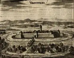 Leslie then decided to further increase the pressure by ordering two infantry regiments to close off all approaches, encircling the town completely. The attacking army soon received news of Ottoman reinforcements on their way from Slatina, in order to lift the siege. Upon learning this, Leslie ordered general Trautmansdorf to take his army and intercept the incoming reinforcements. Trautmansdorf, therefore took his men on a forced march throughout the night and managed to surprise the relief force by successfully attacking them using his cavalry and infantry. In his surprise attack, Trautmansdorf's contingent took out large number of Turks, while also capturing at least 200 alive.[3] The captured Turk prisoners were then marched back to Virovitica and brought out before the town defenders, thus letting them know they will receive no help. The town garrison, upon seeing the captured Turks of the relief party, while also receiving permission to leave town unharmed, decided to surrender to general Leslie on 25 July 1684.[4][3]