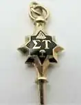 Sigma Tau's colors were navy blue and white. Its symbols were a pyramid and a rail section. Its publication was The Pyramid.