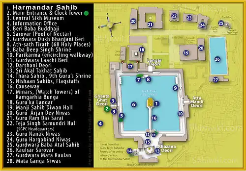 Map of the Harmandir Sahib Complex, Click to enlarge