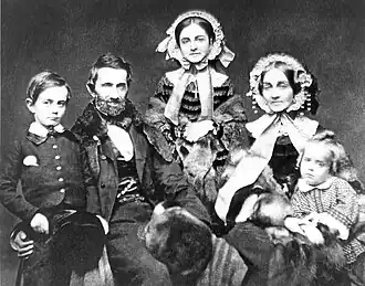 In 1837 Titus married Eliza McCarthy, daughter of Thomas McCarthy and Percy Soule.[2] Bishop John DuBois, of New York City, traveled to Salina near Syracuse, to perform the marriage even though Titus was a Seventh-day Adventist. The marriage certificate became the first catholic record in Onondaga County. The young priest accompanying the Bishop as a sherpa was John McCloskey, the first Archbishop of New York to be created cardinal.[5] Titus returned to New York in 1840 and settled in Salina. He went into business with Dennis McCarthy operating a general store for ten years.[1] In 1850 he was appointed by the Supervisors of Onondaga Co. to the position of Superintendent of the Penitentiary, a position he held for seven years after which he went into the lumber business with McCarthy.[1][6] He stayed in the lumber business until 1861 and the beginning of the American Civil War.[2][3]