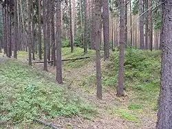 The Silesian Walls (Polish: Wały Śląskie, German: Dreigräben, Silesian: Sylezyjske Ściany) are a line of three (or sometimes fewer) parallel earthen ramparts and ditches that run through Lower Silesia in Poland, by the towns Szprotawa and Kożuchów. The walls are about 2.5 metres tall and, at their widest, 47 metres. They run for about 30 kilometres. It is hypothesized by Maciej Boryna of the Muzeum Ziemi Szprotawskiej that the Silesia Walls were the southwest border of the Duchy of Głogów and built in 1413–1467. It is possible that rather than being military in nature the walls were designed as a type of landwehr to reduce smuggling.