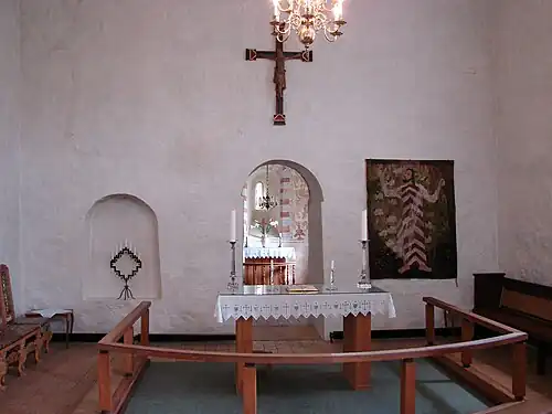 The church was repaired in 1619 and again in 1736. By the 19th century, the population had increased to such an extent that there was a question of either expanding the old church or tearing it down and building a new church. In 1838, the church was renovated and enlarged. The old west wall was removed and a new wooden, timber-framed nave was built out from the west end of the old church. Then, the old nave became the new choir and the old choir became a sacristy. The old medieval parts that remained were clad with wood inside and partly outside so that it would match with the new wooden addition. Some more modernization work was completed in 1865. In 1903, a new church porch and bell tower were built on the west end of the church. Right after the war, the church was restored by partially uncovering of the medieval church walls of the choir and sacristy. In 1966–1970, the medieval choir (which had become the sacristy) was opened up so it could be seen from the nave.[5][6]
