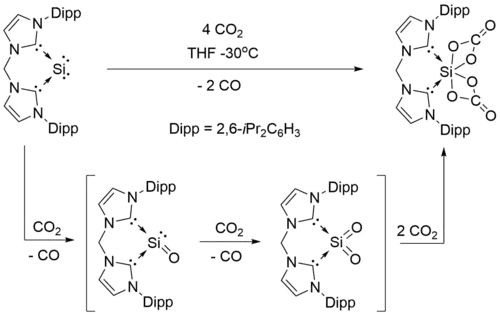 - ^ a b c d Burchert, Alexander; Yao, Shenglai; Müller, Robert; Schattenberg, Caspar; Xiong, Yun; Kaupp, Martin; Driess, Matthias (2017-01-12). "An Isolable Silicon Dicarbonate Complex from Carbon Dioxide Activation with a Silylone". Angewandte Chemie International Edition. 56 (7): 1894–1897. doi:10.1002/anie.201610498. ISSN 1433-7851. PMID 28079944.