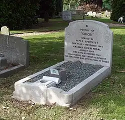 Simon is also commemorated with a bush planted in his honour in the Yangtze Incident Grove at the National Memorial Arboretum in Staffordshire.[5]