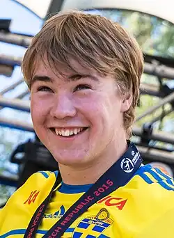 Tibbling represented Sweden at the U17, U19 and U21 levels.[37] In the final group match against Portugal in the 2015 UEFA European Under-21 Championship, Tibbling scored an equalizer in 89th minute which put Sweden through to the semi-final.[38] He again scored in a 4–1 victory in the semi-final against Scandinavian rival Denmark,[39] which saw Sweden advance to the final for the first time since 1992. He also started the final against Portugal. The game ended 0–0 and eventually went to penalties, where Sweden won 4–3, securing their first under-21 title.[40]