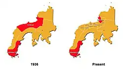 It was during the Third Philippine Republic when Sindangan subsequently lost huge portions of its territories after the creation of its offspring municipalities, namely: Labason (1947),[10] Liloy (1951),[11] Siayan (1967),[12] and Leon B. Postigo (established as Bacungan, 1982).[13] These aforementioned new municipalities also went reductions of their territories later in the years in light of the creation of newer municipalities, making Sindangan their mother and grandmother town.